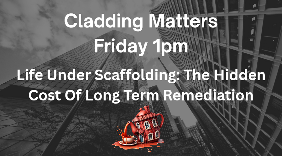 Join us live on Friday 5th September at 1pm for Cladding Matters: Life Under Scaffolding – The Hidden Costs of Long-Term Remediation. Bring your comments, your experiences, or just your curiosity. Everyone’s welcome.