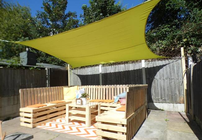 Rear Enclosed, low maintenance paved garden.