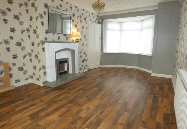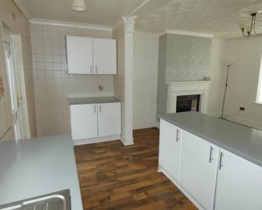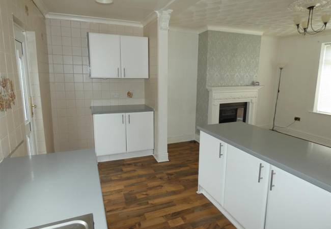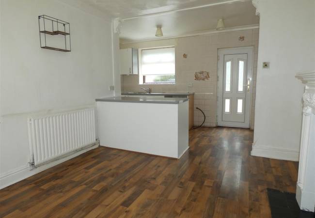With fireplace incorporating a cast iron fire, window to the front elevation and open access into the kitchen area.