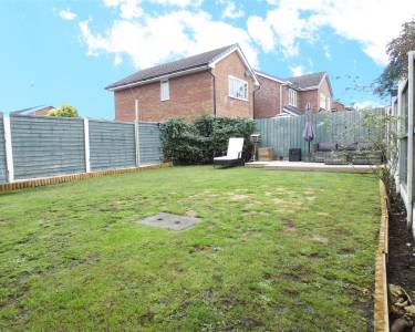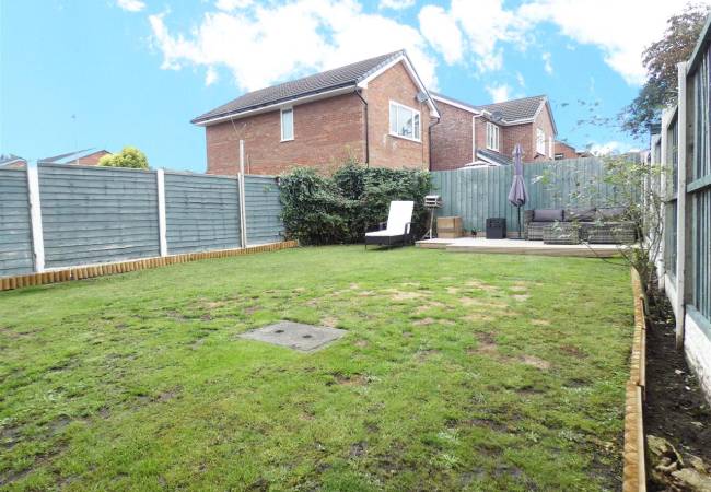 Rear Enclosed garden, laid to lawn with deck area.