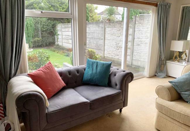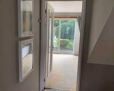 with sliding patio doors and window onto rear garden, stairs to first floor.