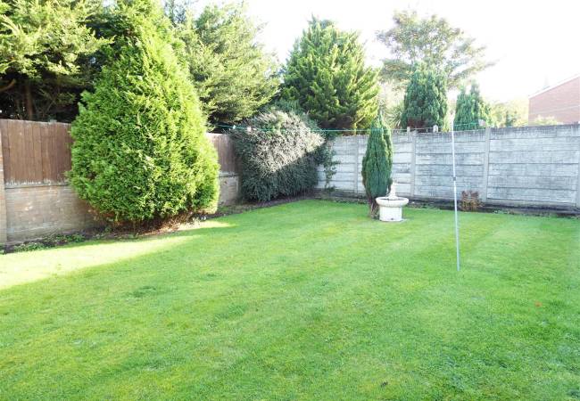 Rear Enclosed garden, laid to lawn with beds and borders, paved patio and garden shed.