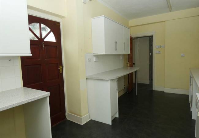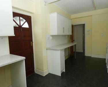 equipped with a matching range of base and wall units, working surfaces, single drainer stainless steel sink, gas cooker point, plumbing for washing machine and dishwasher, tiled splasbacks, wall mounted Vaillant gas central heating boiler, windows to the side and rear elevations, door to garden.