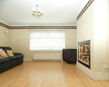 with feature fireplace, laminate flooring, window to the front elevation and double doors through to:-