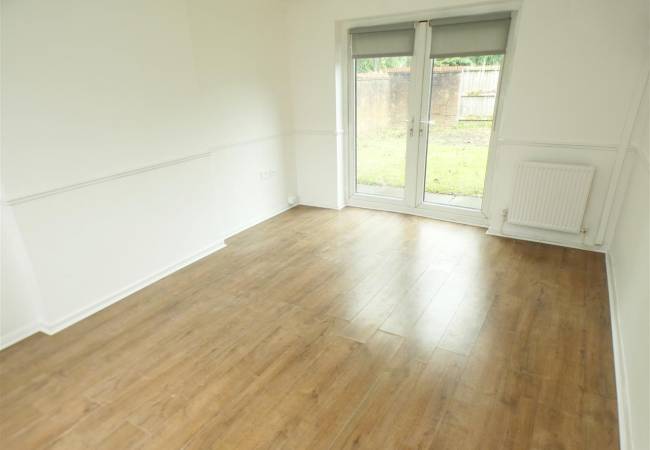 with dado rail, laminate flooring, window to the front elevation and French doors onto garden.