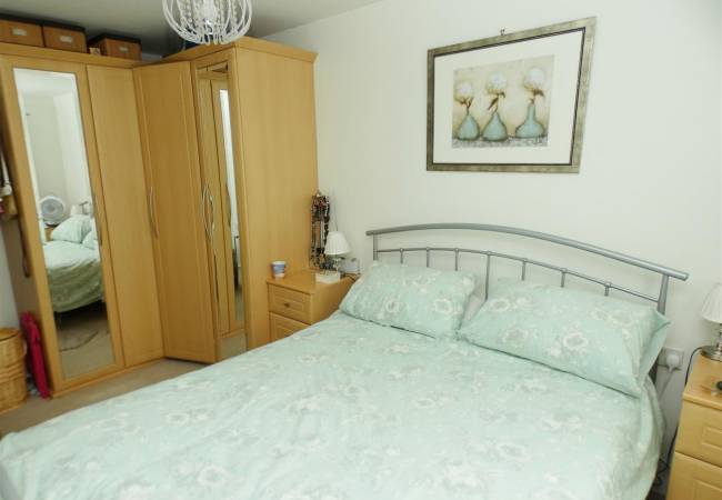 with fitted wardrobe with mirror front sliding door, laminate flooring, window to the front elevation.