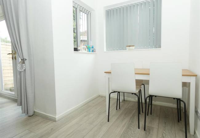 with laminate flooring, French doors onto rear garden, windows to the side and rear elevation.