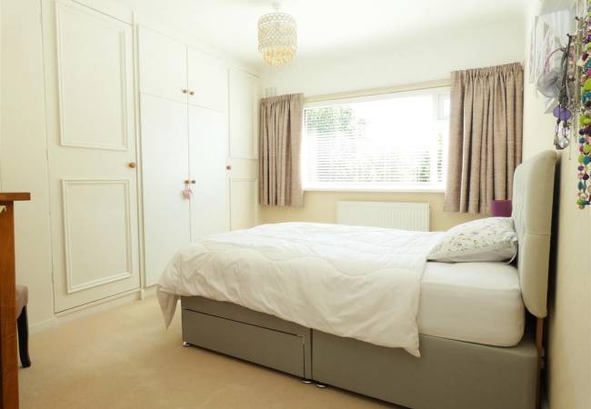 with built in wardrobe, built in cupboard over stairs, window to the front elevation.