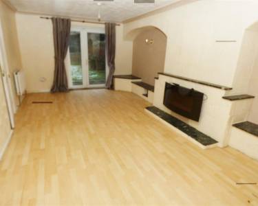 with laminate flooring, wall light points, window to the front elevation and French doors onto rear garden.