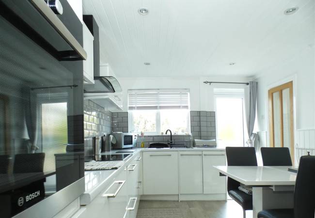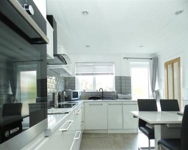 Breakfast Kitchen equipped with a matching range of base and wall units, working surfaces, built in oven and hob with extractor hood over, integrated dishwasher, single drainer sink unit, tiled spashbacks, understairs cupboard, spot lighting, window and door to the rear elevation, door to hall.