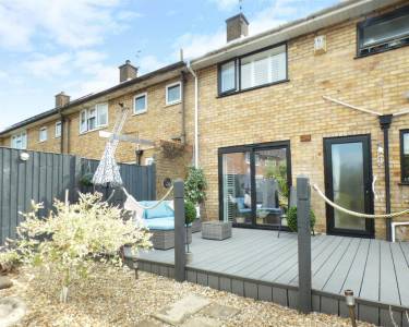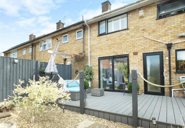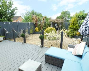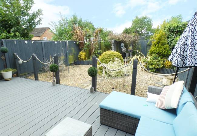 Rear Well maintained garden, laid to lawn with beds and borders and composite deck.