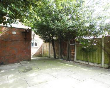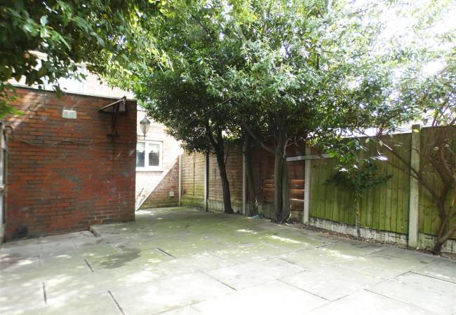 Rear Enclosed low maintenance paved garden.