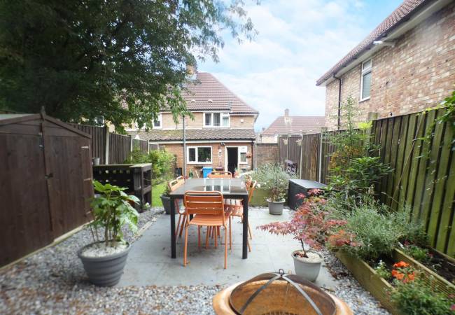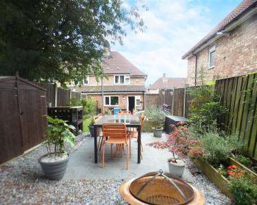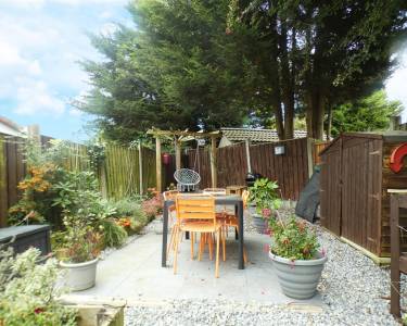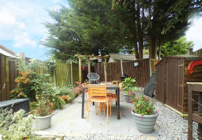 Well maintained enclosed garden, laid to lawn with paved patio area and garden shed.