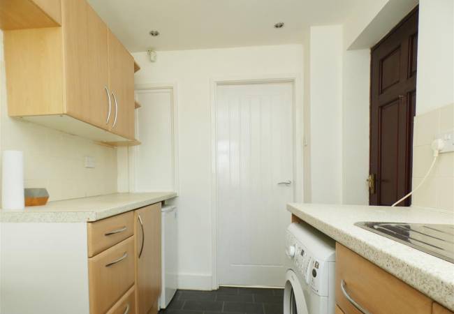 equipped with a matching range of base and wall units, working surfaces, single drainer stainless steel sink, tiled splashbacks, electric cooker point, plumbing for washing machine, windows to the side and rear and door to garden.