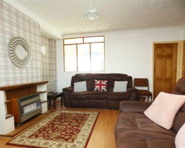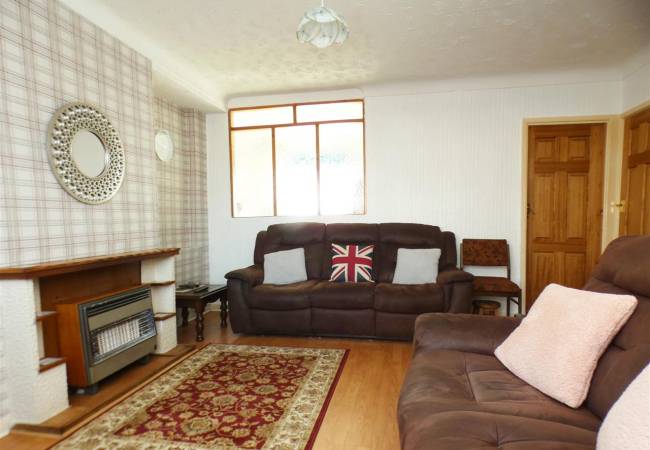 with feature fireplace and gas fire, understairs cupboard, laminate flooring, bay window to the front elevation and window onto kitchen.