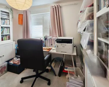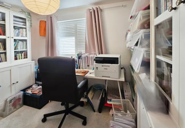 Feature box bay, double glazed window to front, with pleasant views over greenery, radiator.