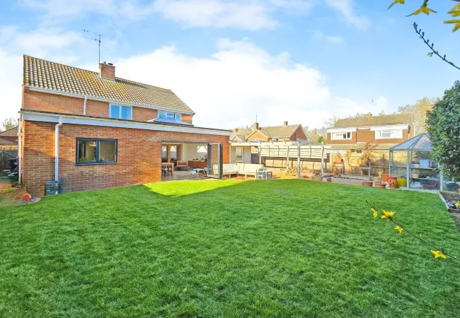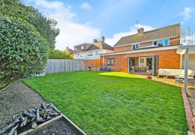 A fantastic family-friendly corner plot garden, offering a generous expanse of level lawn — perfect for play, entertaining, or simply relaxing in the sun. A smart gravel terrace with pergola provides a stylish covered seating area, ideal for outdoor dining or winding down with an evening drink. Raised beds and a greenhouse create opportunities for green-fingered buyers, while the garden is fully enclosed for peace of mind and privacy. A true extension of the home’s living space.