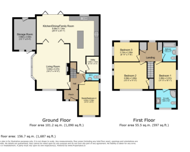 Stairs to first floor landing, doors to all rooms.
