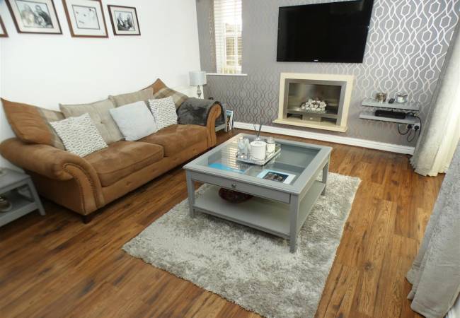 into bay window to the rear elevation, with feature pebble effect gas fire, windows to the side and rear elevations, laminate flooring.